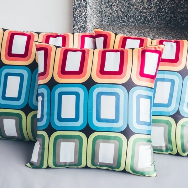 Cushion Covers are of size in square. Our Cushion Cases are made of 180 GSM poly lycra fabric . It is printed using high-quality sublimation EPSON inks with a fade proof guarantee.