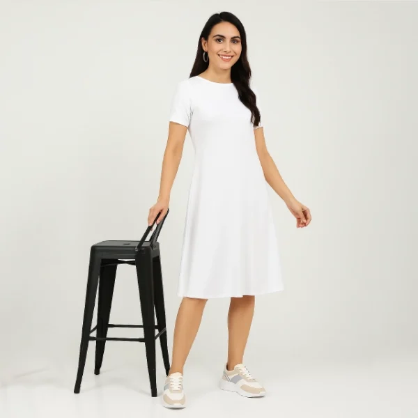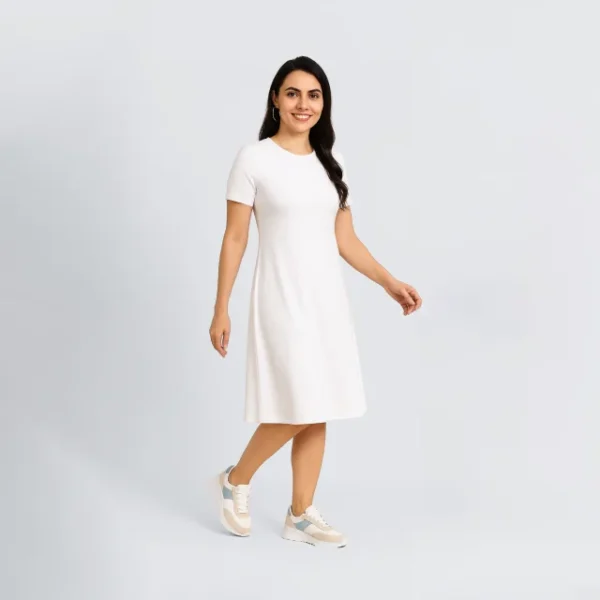 Looking to sell dresses that actually get added to cart? This A line dress gives you everything flattering fit, smooth stretch, and a full print canvas for bold or minimal designs. With a fit and flare silhouette and breathable poly spandex fabric, it’s the kind of piece your customers wear once and ask for in more colors.